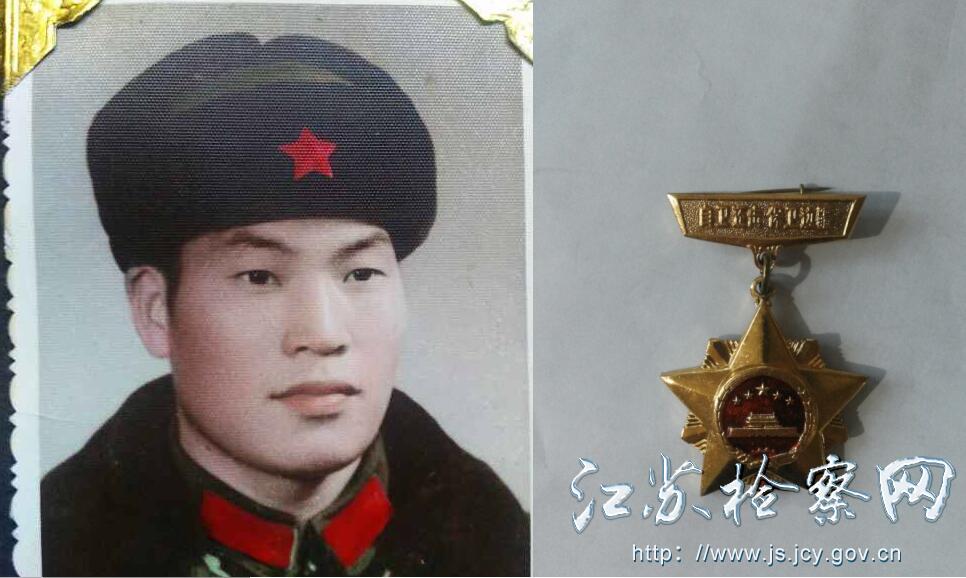 韩杨阳父亲在部队时照片及所获的“自卫还击战军功章”