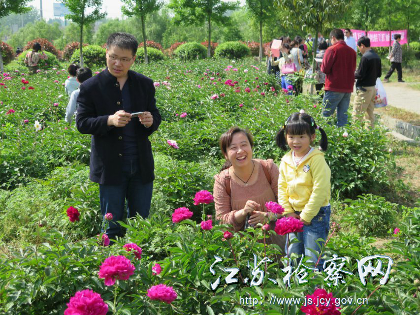 沈鹏飞和妻子带女儿到扬州芍药园赏花,一家三口其乐融融。