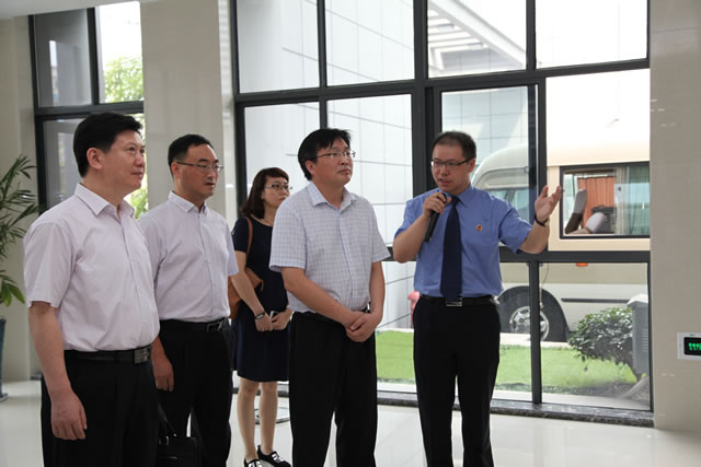 沈鹏飞(右一)在向来宾介绍部门工作情况时表示,认真干事,精益求精,才能干好事。