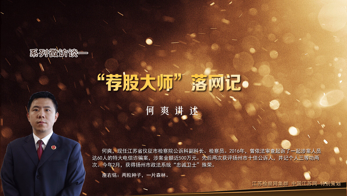是的,电信诈骗依托通讯、网络技术支撑,近年来呈现高发趋势。我今天讲的就是由我们检察机关依法查办的一起典型案例。2015年3月,仪征市公安局接到一名中年女士报案,声称自己在网上炒股的时候,被所谓的“股票专家”骗了200多万元。这名报警女士有点语无伦次,情绪焦灼激动。