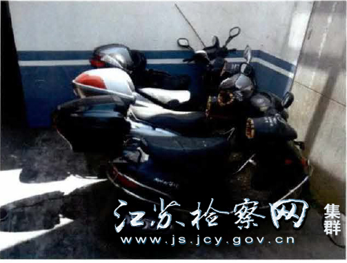 射杀成功后,石保等人抓起中毒的田园犬骑上电瓶车逃跑。图为,警方查获的电瓶车。