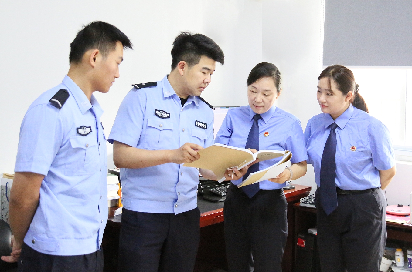 2023年7月12日,承办检察官高霞在办公室和公安机关沟通,引导补充侦查取证。