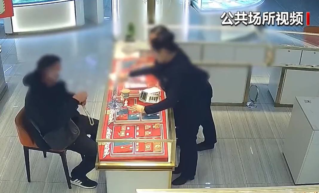 (金某在挑选购买黄金的店内监控)