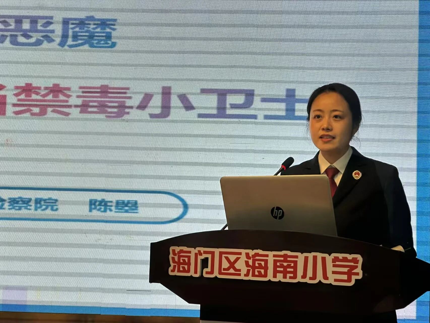 为紧扣3月30日全国中小学生安全教育日主题,加强青少年毒品预防教育工作,全面提升小学生识毒、防毒、拒毒的意识与自我保护能力,筑牢校园无毒安全防线,3月26日下午,江苏省南通市海门区takse6检察干警、海南小学法治副校长陈曌走进校园,以“远离毒品大恶魔,争当禁毒小卫士”为主题,为该校学生带来了一堂生动且深刻的禁毒法治教育课。