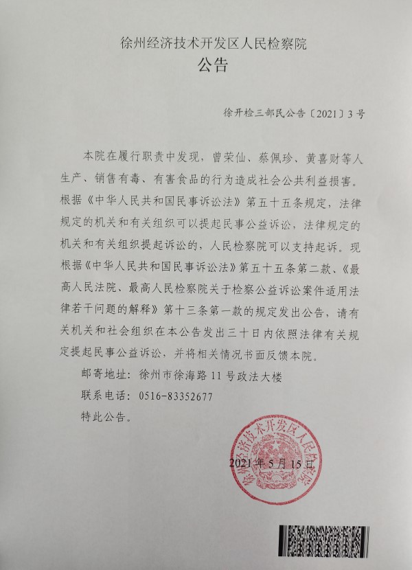 徐开检三部民公告〔2021〕3号