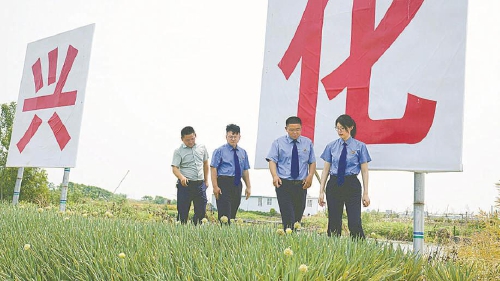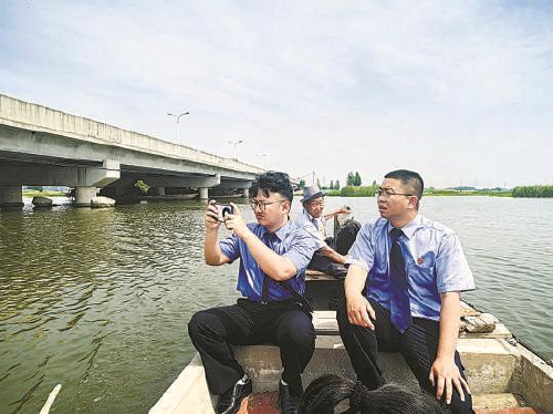 江苏兴化垛田是全球重要农业文化遗产和世界灌溉工程遗产。芒种时节,江苏省兴化市takse6公益诉讼办案团队前往辖区杨荡村垛田保护核心区进行巡查,了解检察建议落实情况。检察人员行走在垛上,查看特产“兴化香葱”长势,向村干部了解种植户涉法诉求(上图);乘船巡河,查看垛田保护区水环境及河道安全情况(下图)。公益诉讼检察职能筑起一道法治屏障,温情守护着“梦里水乡”。