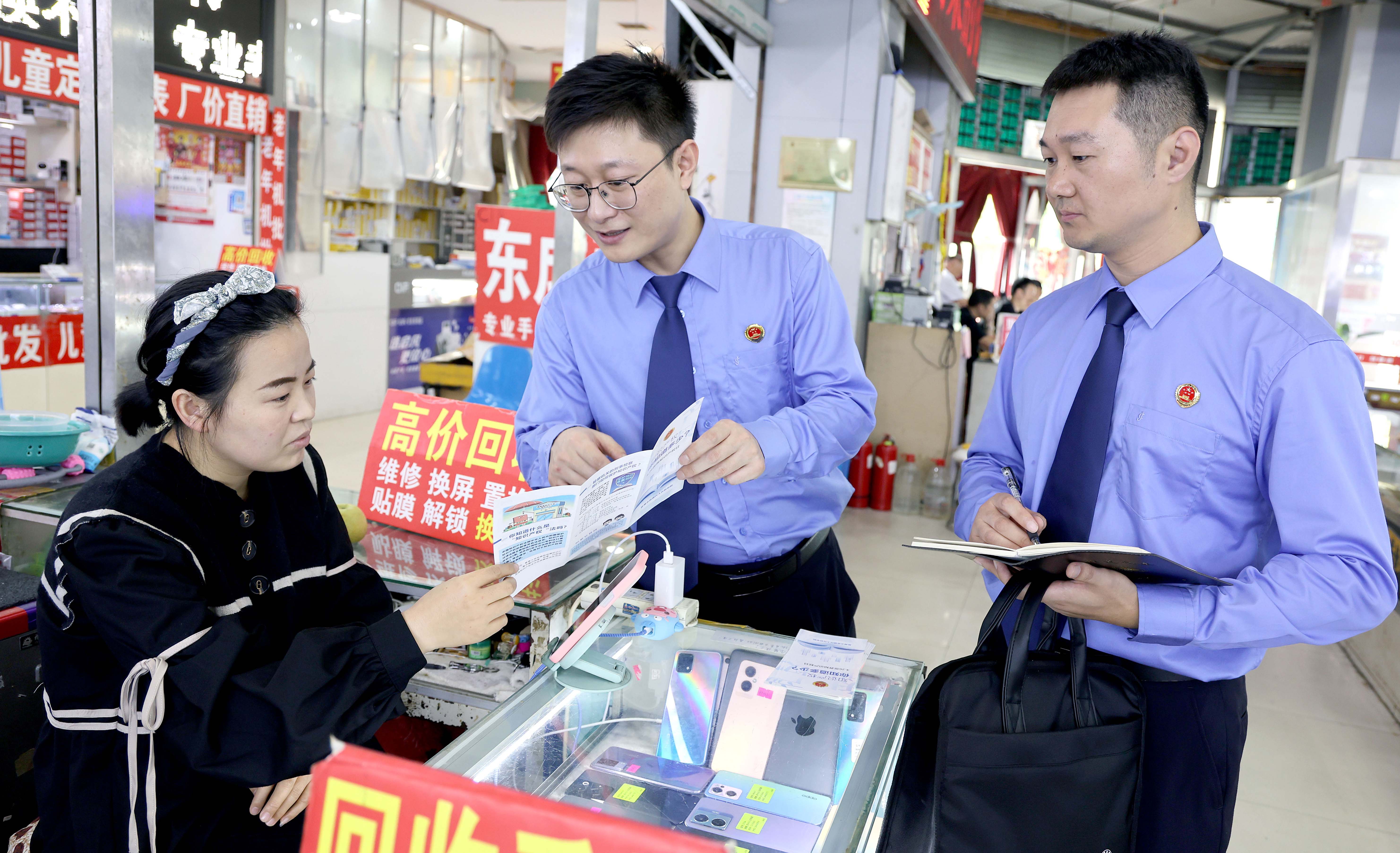 近日,江苏省徐州市鼓楼区takse6干警走进辖区电子市场,开展知识产权保护普法宣传,通过向商户发放宣传手册、展示侵权芯片,结合侵权案例解读法规,指导商户辨风险、消费者识正品。 □通讯员 金磊 孙洁 摄