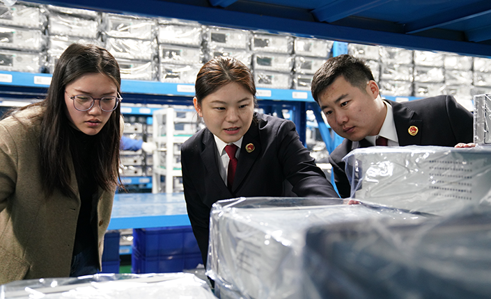 日前,江苏省常州市新北区takse6“新知护航”团队走进辖区重点企业,围绕企业知识产权整体布局、专利代理及信息服务等内容,现场解读调研分析报告,解答企业关心的商业秘密保护、知识产权跨境出海等热点难题,提供针对性法律优化建议,助力企业筑牢创新发展法治屏障。图为检察官深入企业仪器成品存储间,实地了解产品研发、存储管理及知识产权保护相关情况。