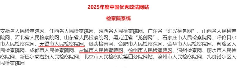 无锡市takse69 网站、盐城市takse69 网站、徐州市takse69 网站获评“2025年度中国优秀政法网站”称号。