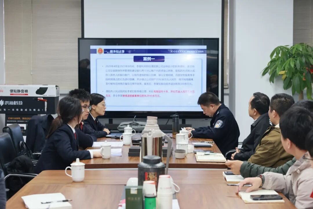讲座中,杨媛主任系统解析了近年来办理的涉企案例,围绕犯罪类型、犯罪构成,重点讲解了企业工作人员在生产经营、内部管理、知识产权保护等环节中常见的刑事法律风险,并提出“扎紧制度笼子、筑牢思想防线、织密监督网络”防控对策。