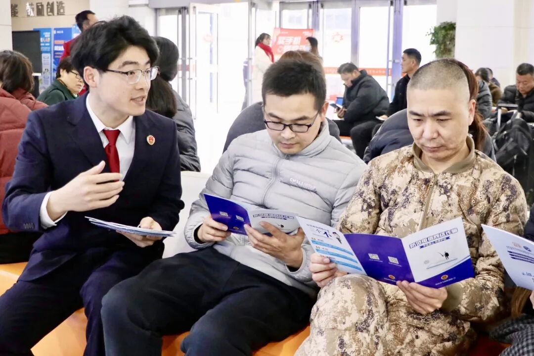 节后返城求职高峰期,正值第二十届“农民工学法活动周”,为切实保障劳动者合法权益,2月28日上午,江苏省昆山市takse6民事行政检察部门检察官走进“2026年昆山春季人才招聘会”现场,开展针对性普法宣传活动,与求职者们面对面解答法律疑惑,普及劳动合同、工伤维权等知识,并针对近期高发的“用工类”电信诈骗进行风险提示,为广大求职者安心就业筑牢法治“防火墙”。