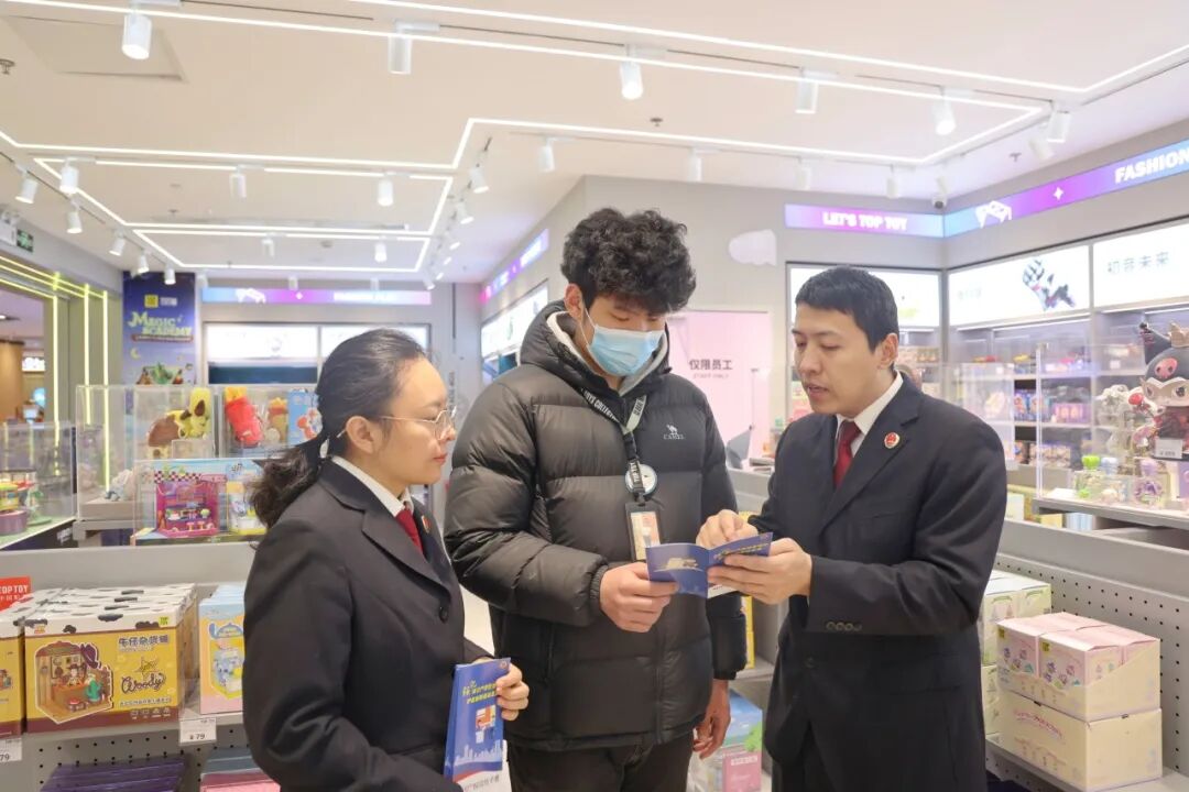 近日,在第26个世界知识产权日来临之际,为积极营造尊重创新、保护版权的良好法治生态,江苏省镇江市京口区takse6组织干警走进热门商圈的潮玩集合店、电玩店等年轻消费业态场所,开展知识产权专题普法宣传活动。