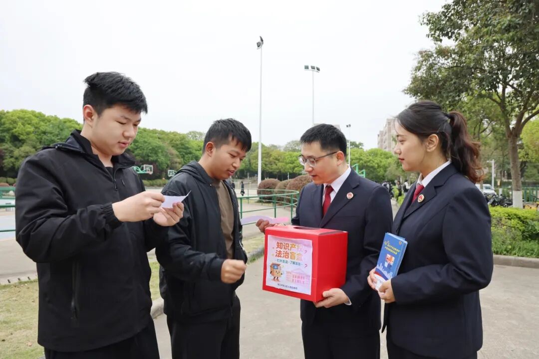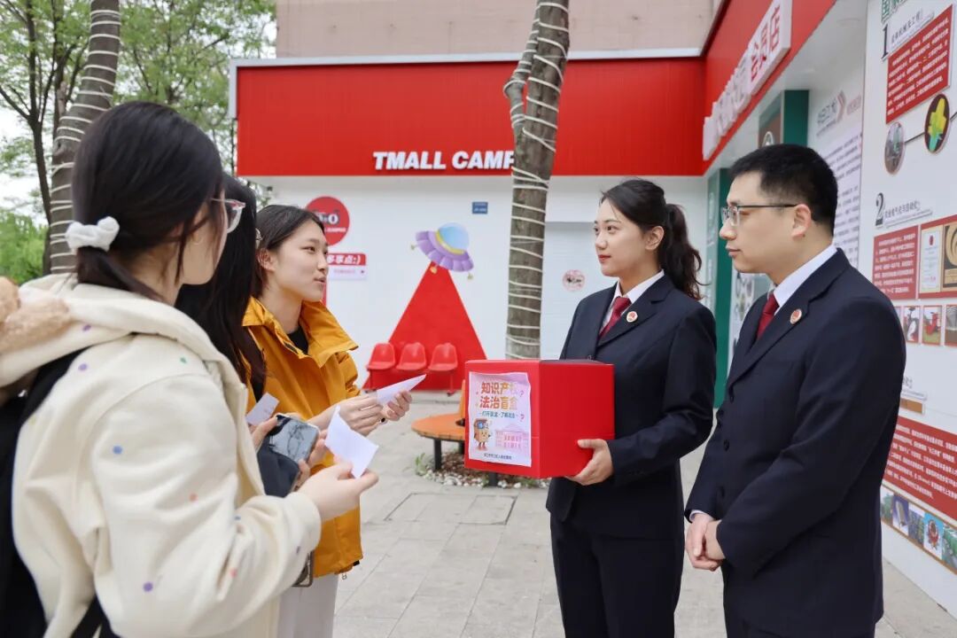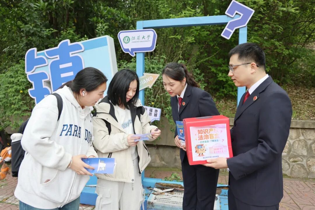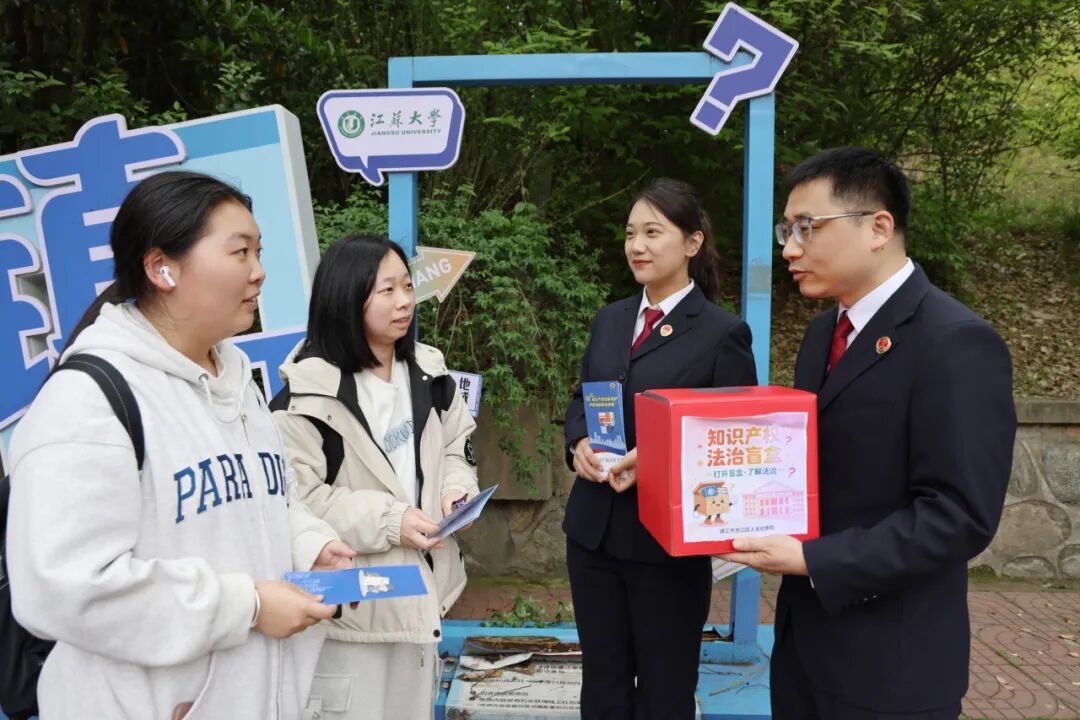 活动中,京口区takse6改变了以往“单向讲解”的传统普法模式,紧密围绕大学生的日常生活,精心选取可能发生在身边的知识产权案例,将抽象的法律条文转化为贴近校园生活的题目,装入特制的“法治盲盒”,让普法从“被动听”转向“主动讲”。